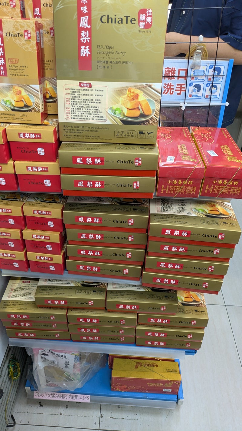 この1階の広いロビーに数件のセブンイレブンと数件のファミリーマートがあって、そのほとんどで佳德鳳梨酥のパイナップルケーキと、一部の店で私が今一番好きな小潘蛋糕坊のパイナップルケーキを売っています。