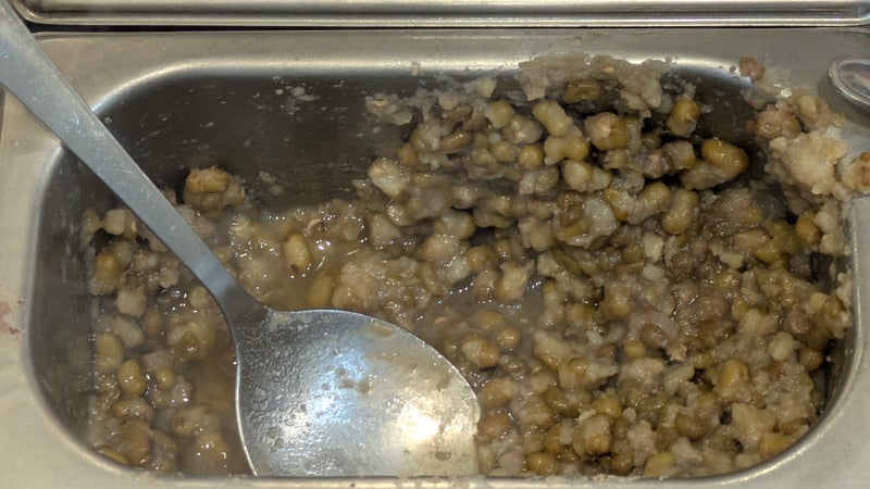 私は暖かく基本の甘めの味付けで、トッピングには緑豆、