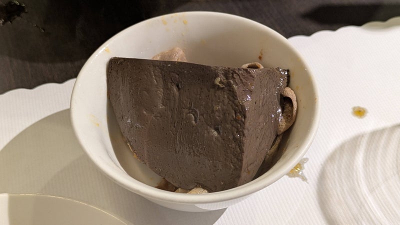 私はこの鴨血(ヤーシェ)が大好きです。最初は説明を聞いて引いてしまいましたが、食べてみると大変美味しくて病みつきになりました。
