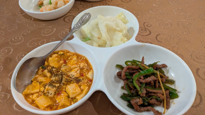 他にも牛肉炒め、ナス炒め、豚肉のフライなど、たくさんいただきました。