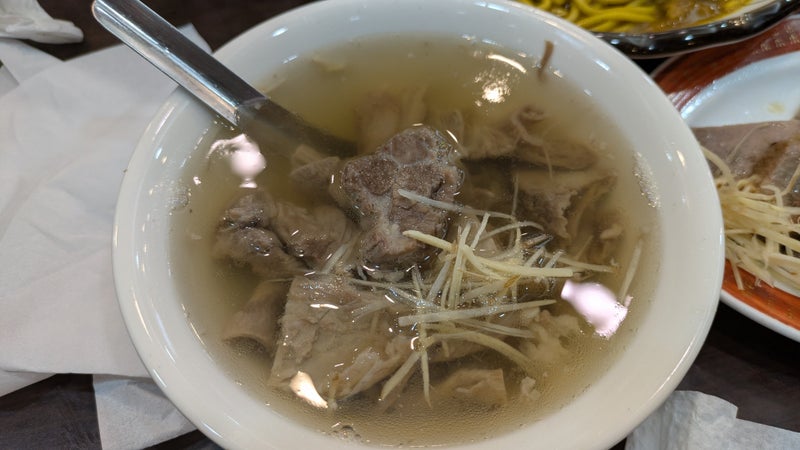 普通牛肉麺の店では紅焼という醤油味のスープと清燉という塩味のスープの2種類を提供していますが、この店は清燉一択という頑固一徹な営業をしています。