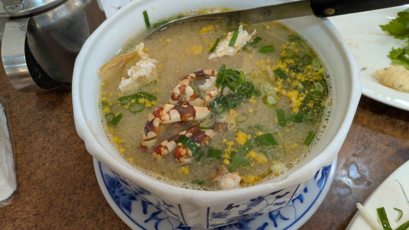 料理名だけ見ると不味そうですが、鵞鳥のモツ出汁で大変美味しいスープです。