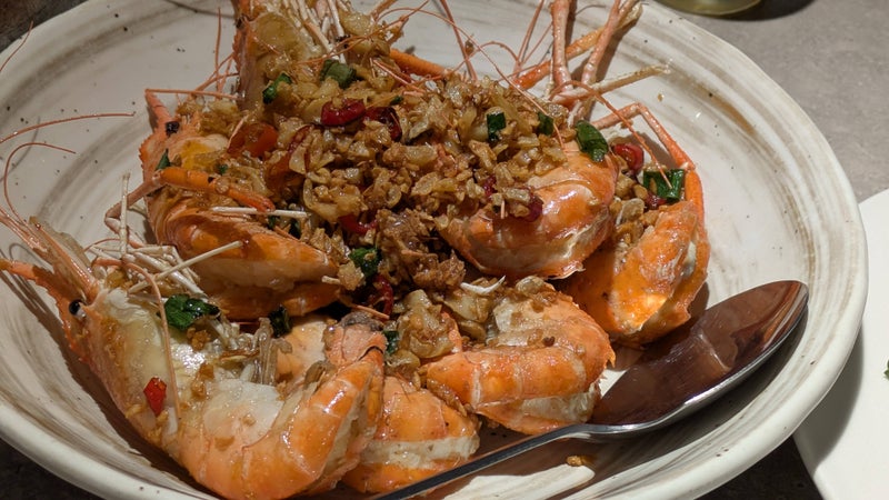 今日の滞在中最後の晩御飯は有名な海老料理を食べに行きました。