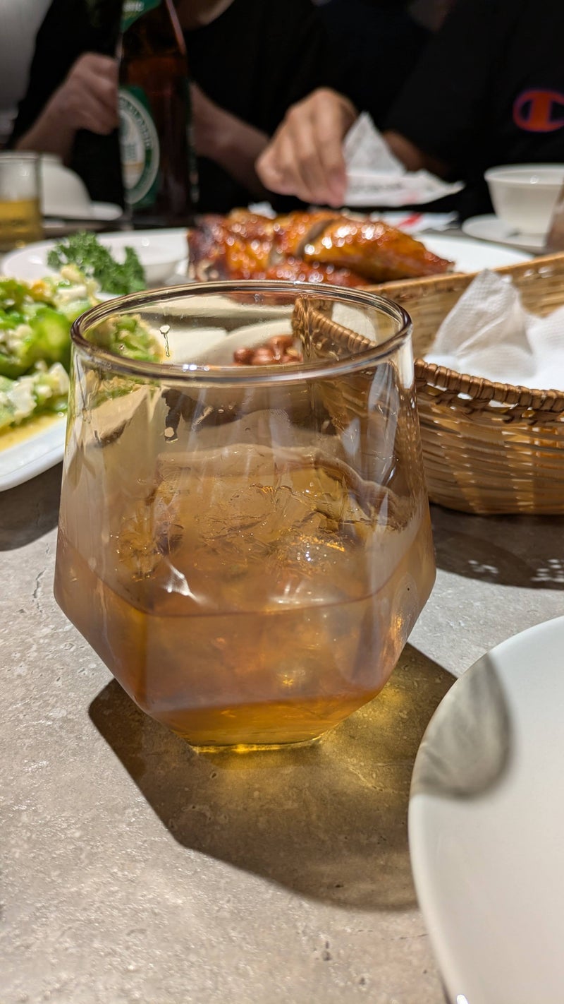 食後に、日本から持ってきている「アスナロ」という肝臓に効く漢方茶を飲むようにしています。