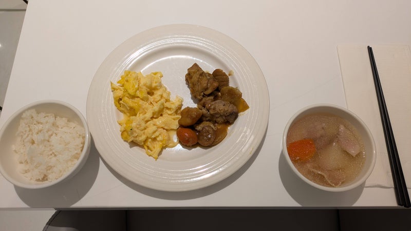 機内では白ワインをいただき、機内食を半分ほどおつまみにして晩御飯にしました。