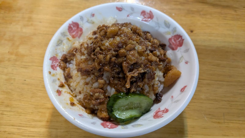 台湾では最もポピュラーなローカルフードで、私が20年前に食べたこの店の美味しさに感動して、それ以来たくさんの店の魯肉飯を食べ歩きましたが、現時点でこの店を超える店は見つかっていません。