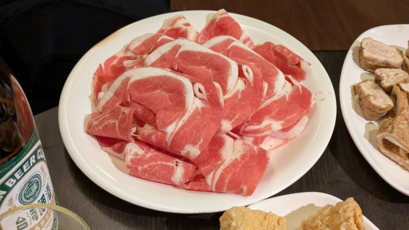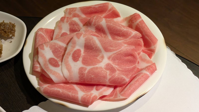 麻辣スープには、鴨血(ヤーシェ)という鴨の血を固めて豆腐のようにした食材が入っています。