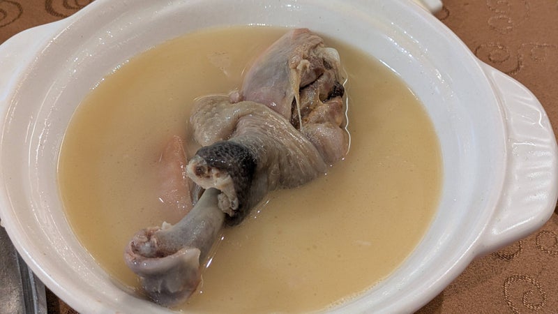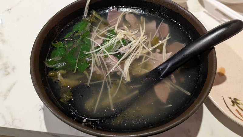 料理名だけ見ると不味そうですが、鵞鳥のモツ出汁で大変美味しいスープです。