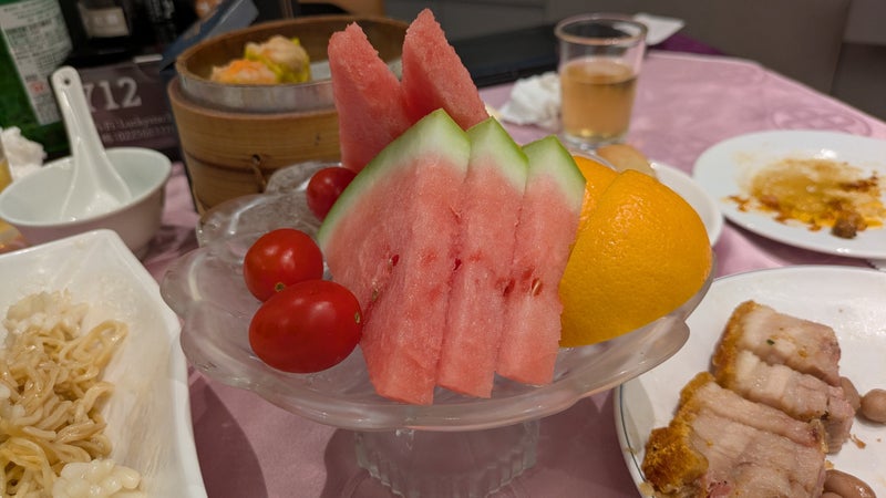 11時にチェックアウトして荷物をフロントに預け、最後に、いつもお世話になっているご夫婦と飲茶の昼御飯を食べに行きました。